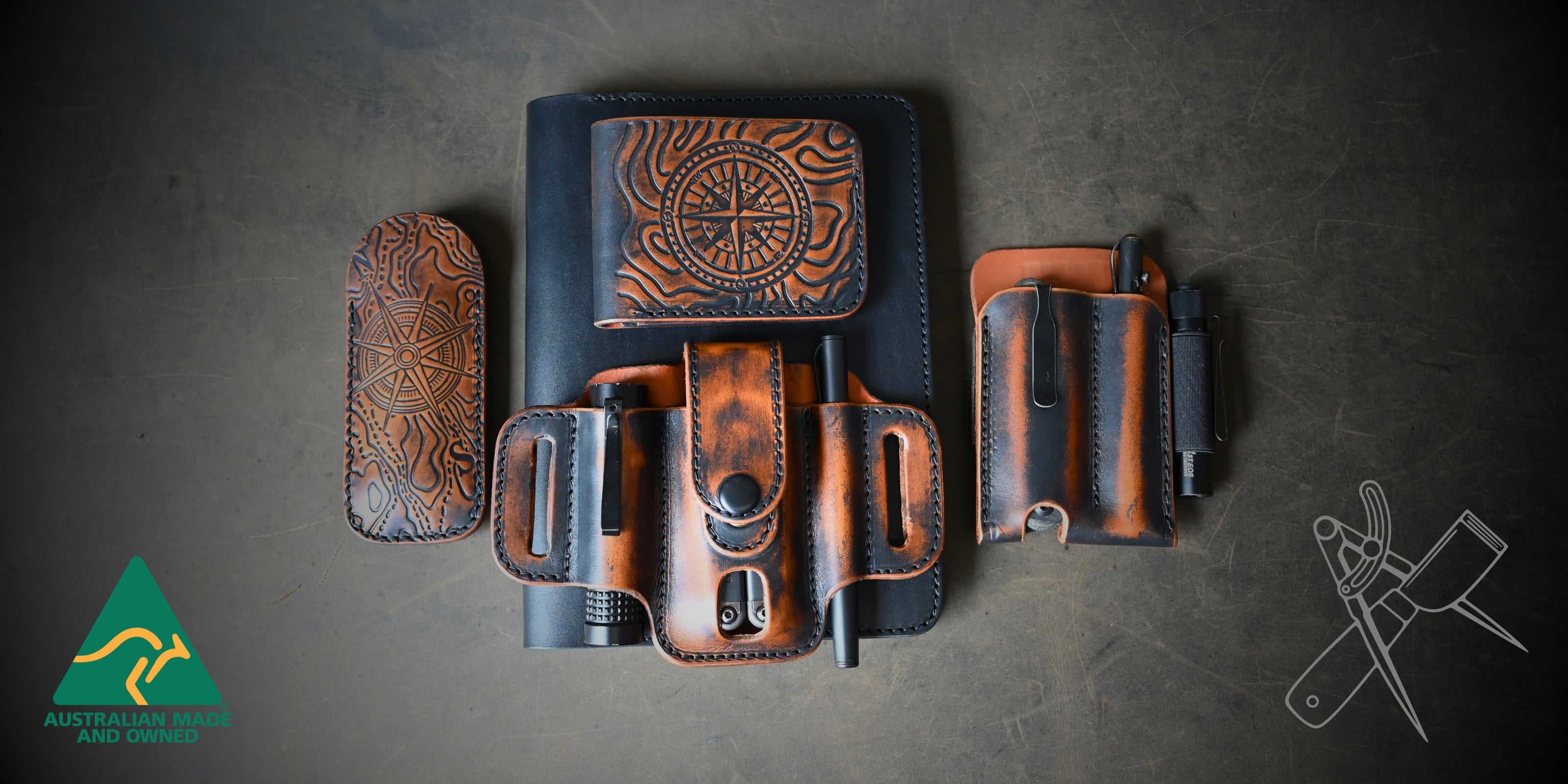 Matt Keillor, founder of RMK Leather Works, discovered his passion for leatherwork while seeking a reprieve from the demanding FIFO life. During a visit with his father in Queensland, they spent a day crafting a belt and ammo pouch – enduring pieces made by hand. Once taught the basics this experience ignited a passion in Matt, who honed his skills under the guidance of his father, Ross (the "R" in RMK). Those early lessons laid the foundation for the exquisite leather goods RMK Leather Works creates today.