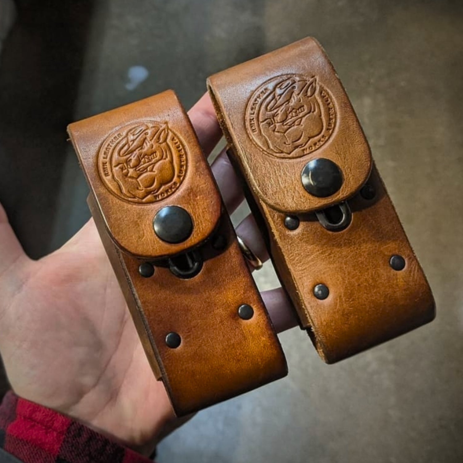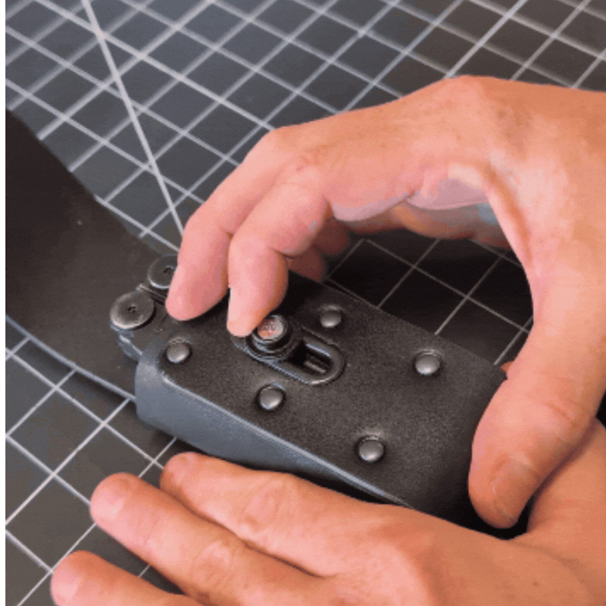 Our adjustable snap design is an exclusive RMK innovation. Loosen the screw that secures the male section of the snap to slide it up or down, into the position required to suit your multi-tool and then tighten it in place. You can use the adjustable snap to eliminate any tool movement inside the holster, if it's set at the right height for your particular multi-tool. Ensure to do the screw up nice and tight! If you lose your adjustable snap, you can find replacement parts in the Parts & Maintenance collection. If you don't intend to swap out your multi-tools, you can lock the threads with Loctite.
