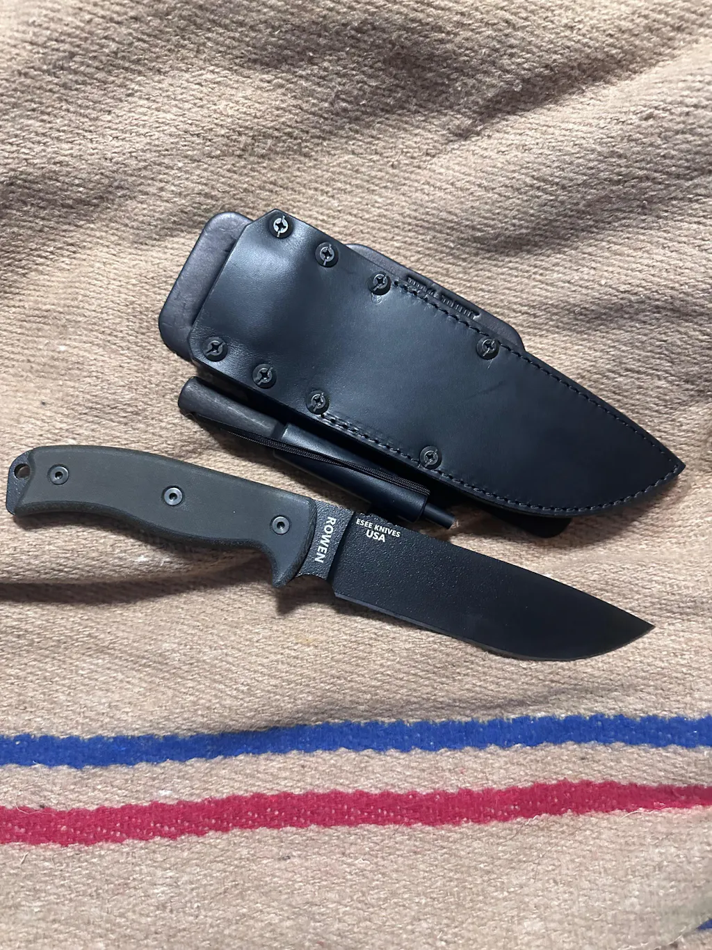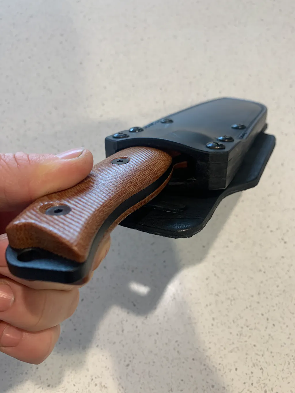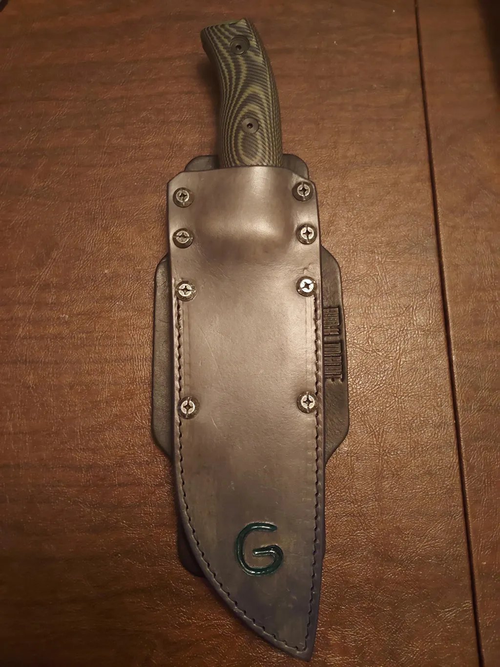 RMK Leather Works Australia Retention Sheath to suit the Esee 6. The design offers ambidextrous carry solutions and two stage retention from the blade and scales. No keeper straps required, allowing for quick, easy & almost silent access to your bush craft knife when you need it. Just thumb ramp your knife out of the sheath like a kydex sheath.