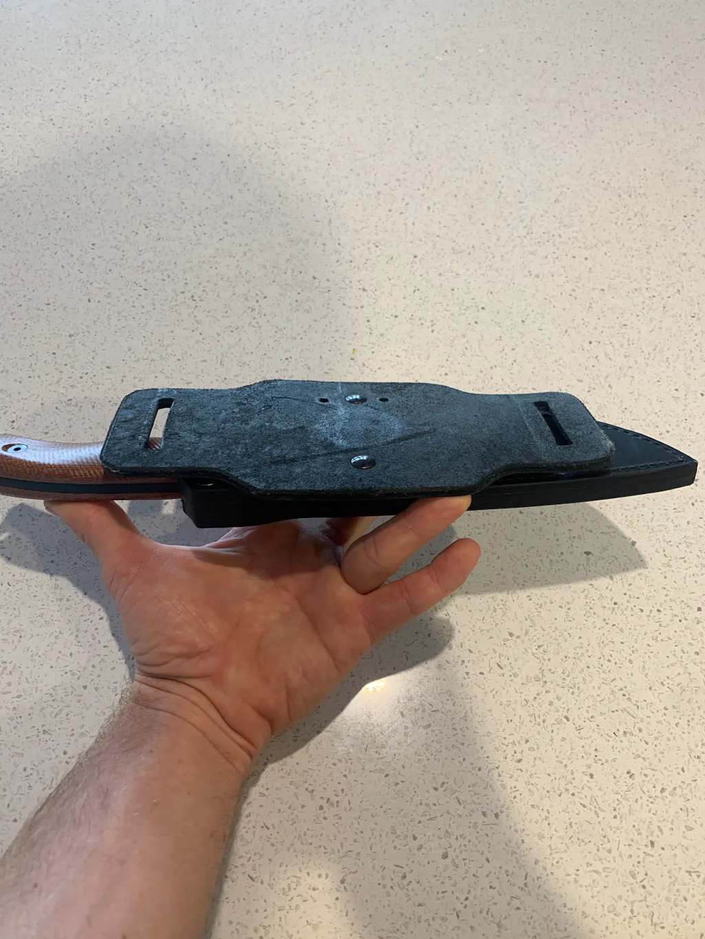 Horizontal carry sheath adaptor: The name says it all, this is for horizontal belt carry. The sheath can be removed from the belt by undoing the press studs.